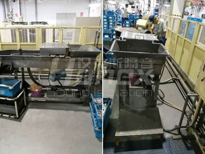 蘇州吉田建材設(shè)備運行時產(chǎn)生巨大振動及水花,對本隔音罩的耐久性、防腐蝕性都有了更高的要求。本項目的治理目標為:根據(jù)客戶要求,降噪措施實施后,隔音罩外1m處的噪聲值在85dB(A)左右,修正值為±2dB,開口處除外。剔除其他噪聲對此結(jié)果貢獻。