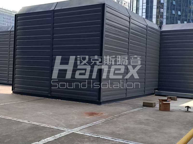 3、根據(jù)現(xiàn)場(chǎng)實(shí)際情況,空調(diào)機(jī)組底部的壓縮機(jī)周圍無阻擋,我司技術(shù)人員發(fā)現(xiàn)壓縮機(jī)工作運(yùn)行時(shí)所產(chǎn)生的噪聲往外擴(kuò)散,影響其周邊環(huán)境。因此,我司技術(shù)人員結(jié)合以往同類項(xiàng)目案例經(jīng)驗(yàn),采用隔音板對(duì)空調(diào)機(jī)組底部壓縮機(jī)四周進(jìn)行圍擋,控制其工作產(chǎn)生的噪聲往外擴(kuò)散。同時(shí)從空調(diào)機(jī)組頂部做500mm隔聲掛板,防止壓縮機(jī)產(chǎn)生的噪聲從頂部溢出擴(kuò)散到周圍環(huán)境。