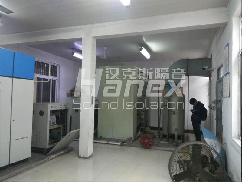 制氧機(jī)房?jī)?nèi)制氧設(shè)備運(yùn)行時(shí),經(jīng)漢克斯隔音技術(shù)人員實(shí)測(cè)房?jī)?nèi)噪聲數(shù)據(jù)值為90dB(A);制氧機(jī)房雙開(kāi)門(mén)外噪聲數(shù)據(jù)值為66dB(A);制氧機(jī)房西側(cè)排風(fēng)口噪聲數(shù)據(jù)值為80dB(A)。